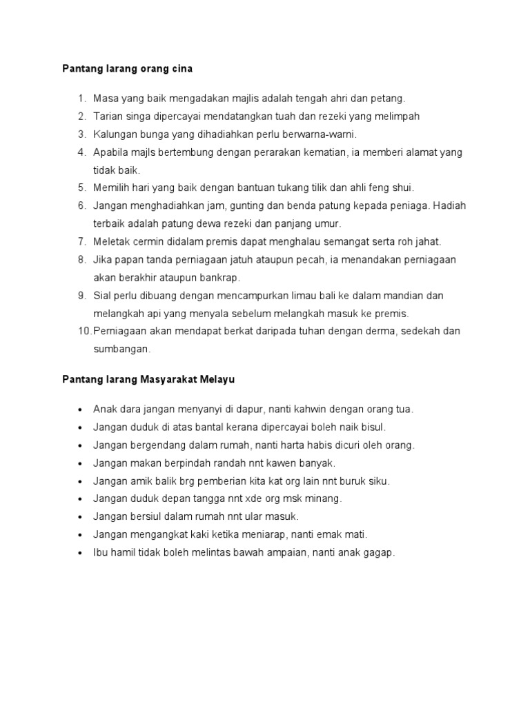 Related : Pantang Larang Orang Cina Dan Sebab / Pantang larang orang cina & india..