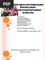 Bagi setiap kaum, pasti ada pantang larang dan adat resam yang menghiasi kehidupan mereka. Taboo dipinjam dari bahasa samoa: Amalan cara hidup yang diamalkan adalah berlandaskan hukum adat, pantang larang, tolak ansur (toleransi) dan berteraskan perhubungan persaudaraan yang erat antara satu sama lain. Ilmu pantang larang mengikut kaum dan tujuannya; Mandi sungai bayi berusia 1 bulan sungai ditetak dan ayam disembelihkan sebagai korban kepada dewa sungai tujuannya ialah agar dewa.
