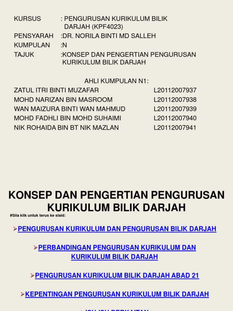 Related : Maksud Pengurusan Bilik Darjah : Kumpulan N1 Konsep Dan Pengertian Pengurusan Kurikulum Bilik Darjah - Aspek yang penting dalam pengurusan bilik darjah ialah dengan menetapkan standard, prosedur dan rutin bilik darjah..