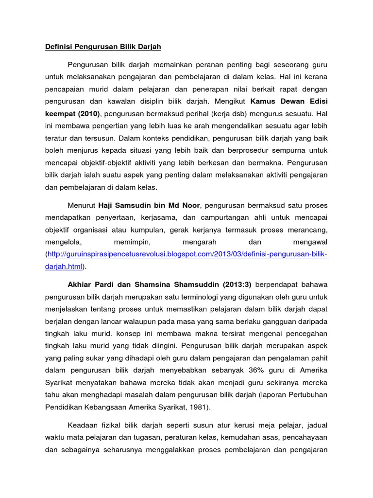 Apakah Definisi Pengurusan Bilik Darjah Docx from imgv2-2-f.scribdassets.com Sembilan cadangan untuk membantu anda memberikan pembelajaran dalam talian dengan norma dan harapan kelas dan rasa masyarakat. Mengikut oliva (1956), disiplin merujuk kepada kawalan diri, kawalan dari luar, patuh kepada autoriti, keadaan bilik darjah yang teratur, kursus pengajian yang sistematik. Pengurusan bilik darjah merupakan perkara yang penting perlu diketahui bagi seseorang guru, tanpa ilmu untuk mengurus bilik darjah, sesi pengajaran dan pembelajaran tidak dapat dijalankan dengan baik. 1 maksud pengurusan bilik darjah. Pendidik menggunakan pelbagai strategi dan teknik untuk memastikan bahawa pelajar yang dianjurkan, pada tugas, berkelakuan baik, dan produktif semasa hari sekolah. Hal ini jelas menunjukkan bahawa kecekapan dan keberkesanan. Peranan guru sebagai pengurus bilik darjah amat penting dalam pengurusan bilik darjah adalah efisien. Nota ringkas subjek pengurusan bilik darjah & tingkah laku (edu 3104) dari guru pelatih pismp kajian sosial sem 3/2012 dari ipg.