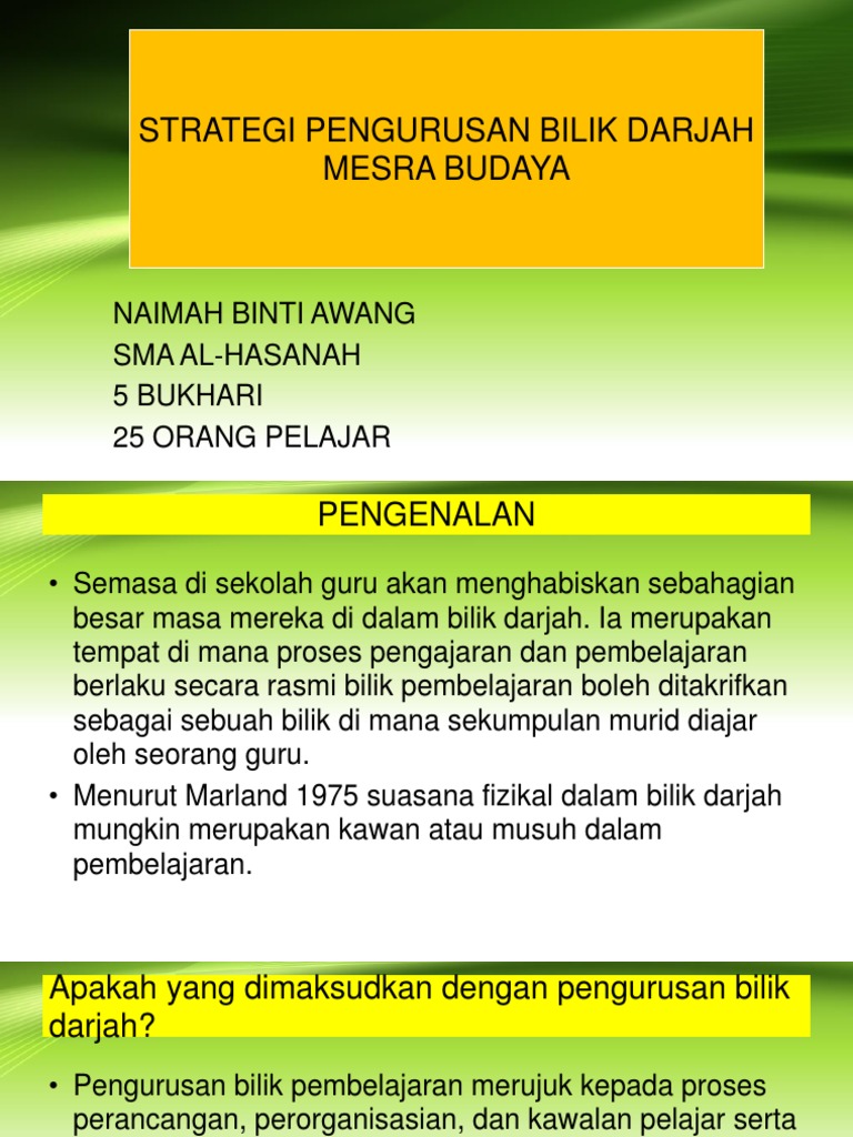 Maksud Pengurusan Bilik Darjah : Kumpulan N1 Konsep Dan Pengertian Pengurusan Kurikulum Bilik Darjah - Aspek yang penting dalam pengurusan bilik darjah ialah dengan menetapkan standard, prosedur dan rutin bilik darjah.. Selamat sejahtera, kami dari kumpulan 11. Pendidik menggunakan pelbagai strategi dan teknik untuk memastikan bahawa pelajar yang dianjurkan, pada tugas, berkelakuan baik, dan produktif semasa hari sekolah. Peranan guru dalam pengurusan bilik darjah. Pada zaman yang dilingkari dengan kemajuan sains dan teknologi ini, guru banyak berhadapan dengan pelbagai ragam dan tingkah laku murid yang bermasalah yang boleh mengundang kepada masalah disiplin yang lebih besar. Bilik darjah atau kelas di sekolah penting sebagai medium bagi menjayakan proses pengajaran dan pembelajaran.
